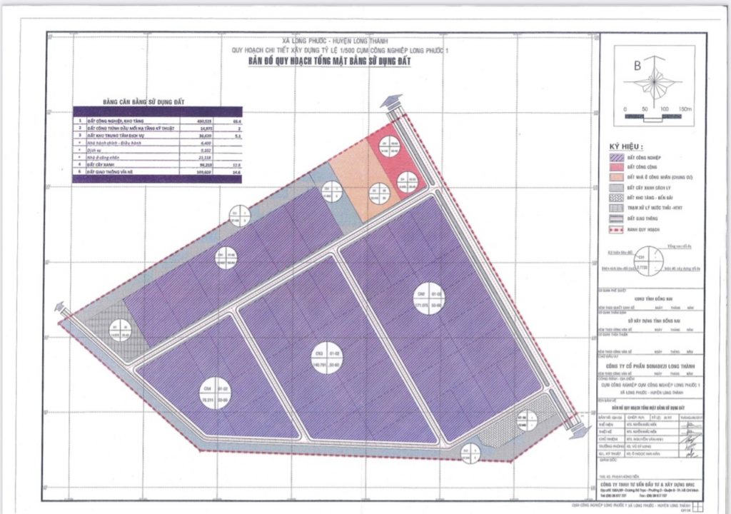 Về cơ cấu sử dụng đất, phần lớn diện tích được dành cho đất sản xuất công nghiệp, phần còn lại bố trí cho đất hạ tầng kỹ thuật, giao thông, cây xanh và các công trình hành chính – dịch vụ. Cách bố trí này đáp ứng mô hình cụm công nghiệp tập trung, đồng thời đảm bảo các khoảng đệm an toàn môi trường theo quy định, tạo lợi thế cho nhà đầu tư trong và ngoài khu vực đang tìm kiếm cơ hội đầu tư bất động sản công nghiệp tại Long Thành.